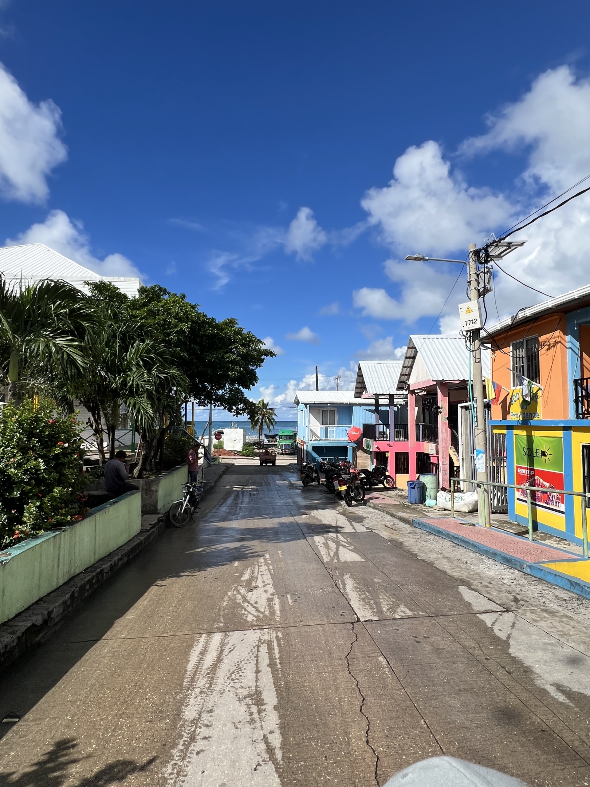 L’île a été totalement dévastée par un ouragan en 2020 et en porte encore les stigmates. Les maisons sont difficilement reconstruites, beaucoup de morceaux d’anciens bâtiments n’ont pas encore été reconstruits, ce qui laisse un sentiment étrange antre l’île dévastée et l’île pas terminée dans sa reconstruction. La population, de majorité noire, parle l’anglais et le créole, parfois les 2 mélangés. L’espagnol de la Colombie s’entend peu ici mais cela est plus facile pour nous même si on a l’impression d’avoir changé de pays.
